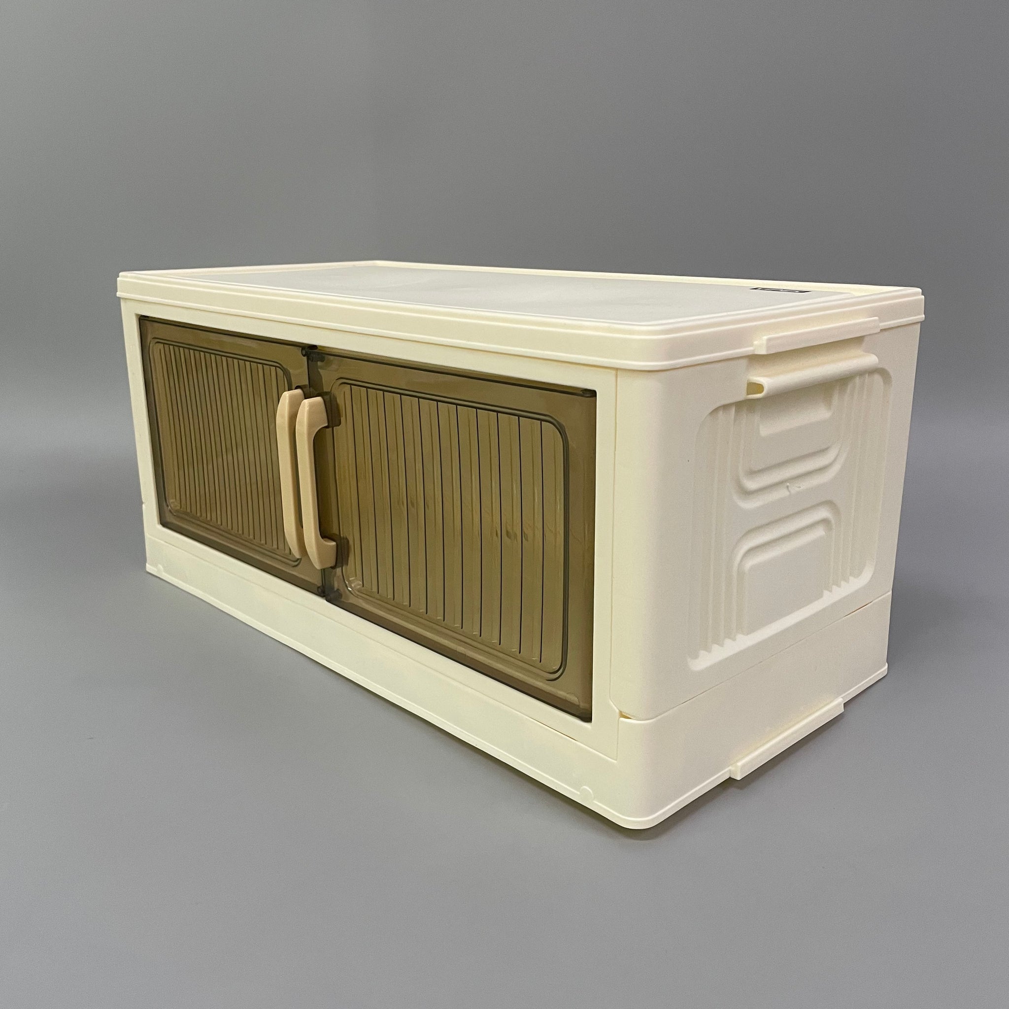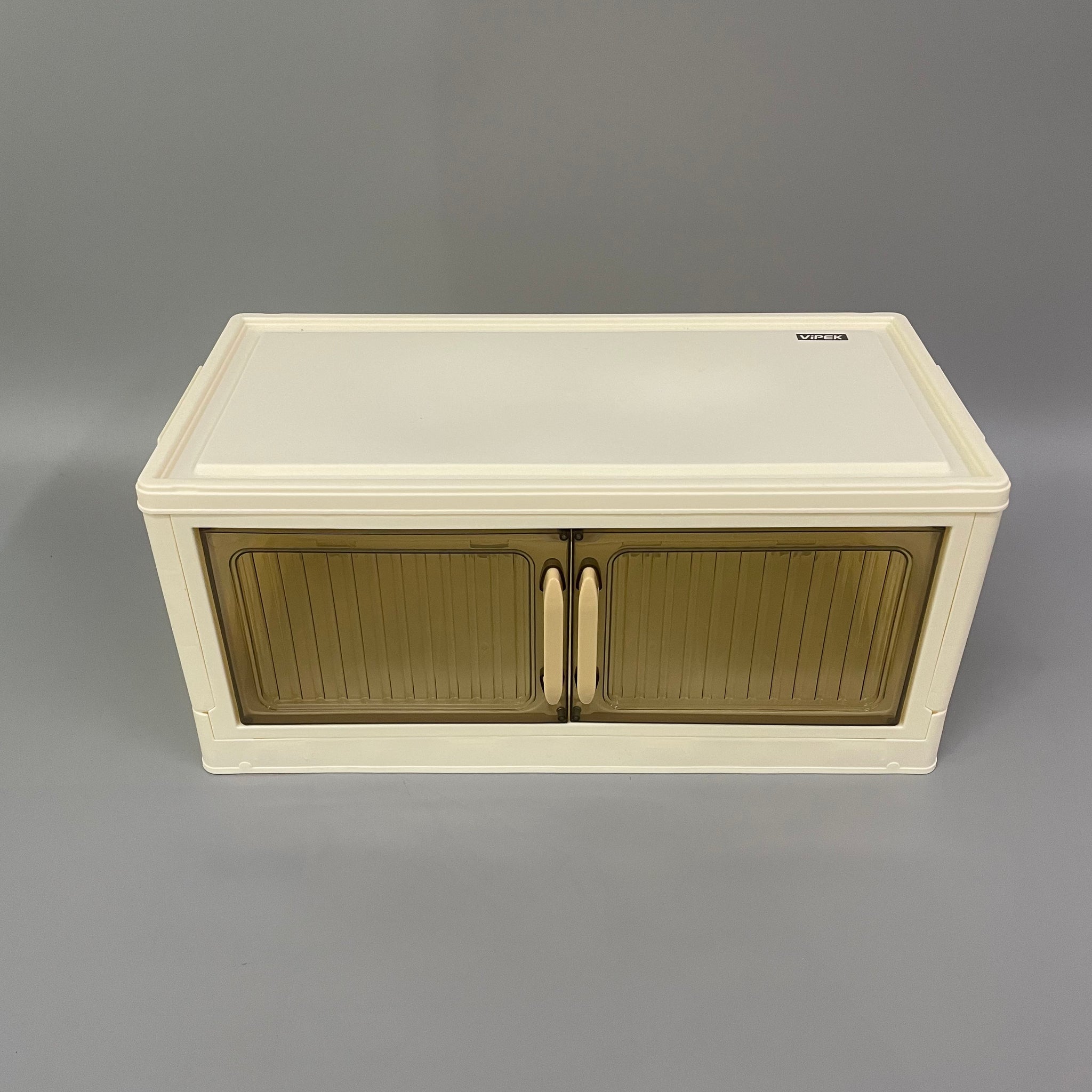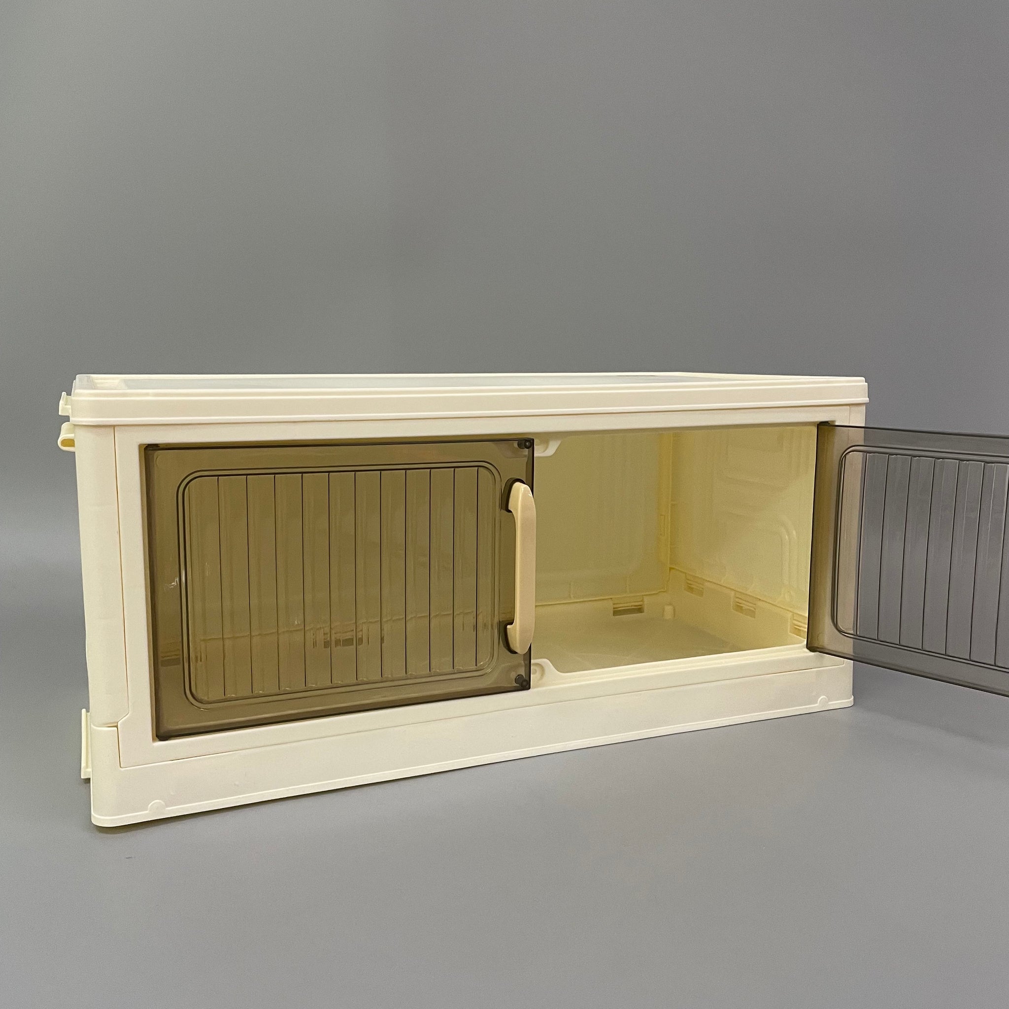 Stackable storage, large capacity, transparent double-door design.